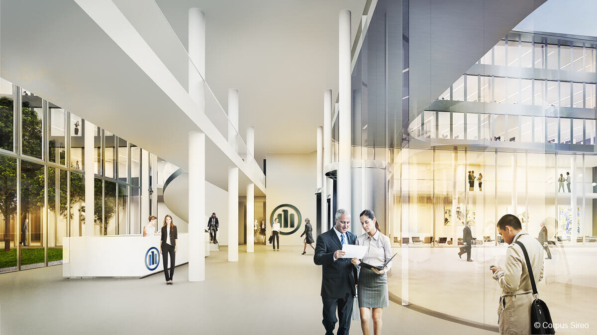 Die CORPUS SIREO Asset Management Commercial GmbH (Bauherr) errichtet in Kooperation mit der FOM Real Estate GmbH (Generalübernehmer) für die Allianz (Mieter) ein aus drei Gebäuden bestehendes Büroensemble im Ortsteil Adlershof in Berlin.