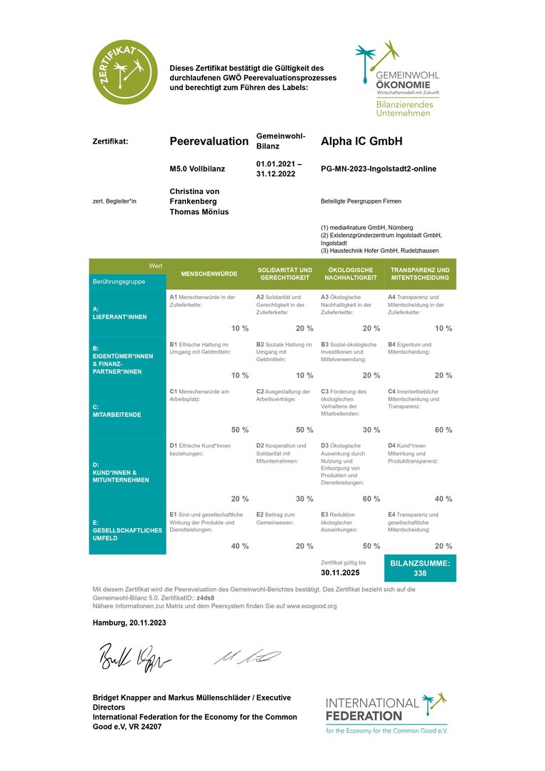 In der Vergangenheit hatten wir bereits intrinsisch motiviert nach DNK bzw. GRI berichtet. Nun haben wir uns entschieden, unseren Impact nach Gemeinwohl-Ökonomie darzulegen und eine Bilanz zu erstellen. Das Besondere an der Gemeinwohl-Bilanz ist, dass uns damit ein Werkzeug zur Verfügung steht, mit dem wir unseren Impact erkennen und gezielter steuern können.