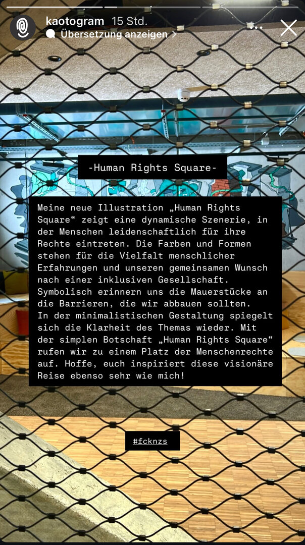 Die Botschaft des Graffiti lautet: Menschenrechte und Demokratie nicht nur wertzuschätzen sondern sich aktiv für deren Bewahrung - gerade angesichts des aktuellen Rechtsrucks - einzusetzen. Kein Wunder also, dass die Darstellung auch Bezug nimmt auf den 35. Jahrestag des Mauerfalls. Wir Alphas sehen uns mit unserer Arbeit als Wegbereiterinnen für lebenswerte Zukunft. In diesem Sinne ist das "Human Rights Square" Graffiti, das im Übrigen nicht gesprayt sondern mit speziellen schadstofffreien Stiften an die Wand gemalt wurde, ein Bekenntnis für Freiheit und Demokratie und eine Verpflichtung gegenüber unseren Kindern und Enkel:innen, verantwortungsvoll mit unserem Planeten umzugehen.