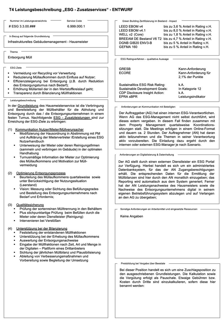 Abbildung 3: ESG-Zusatzleistungen Leistungsbeschreibung Thema "Entsorgung Müll"
