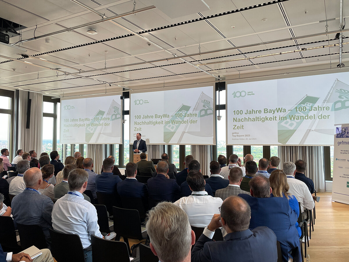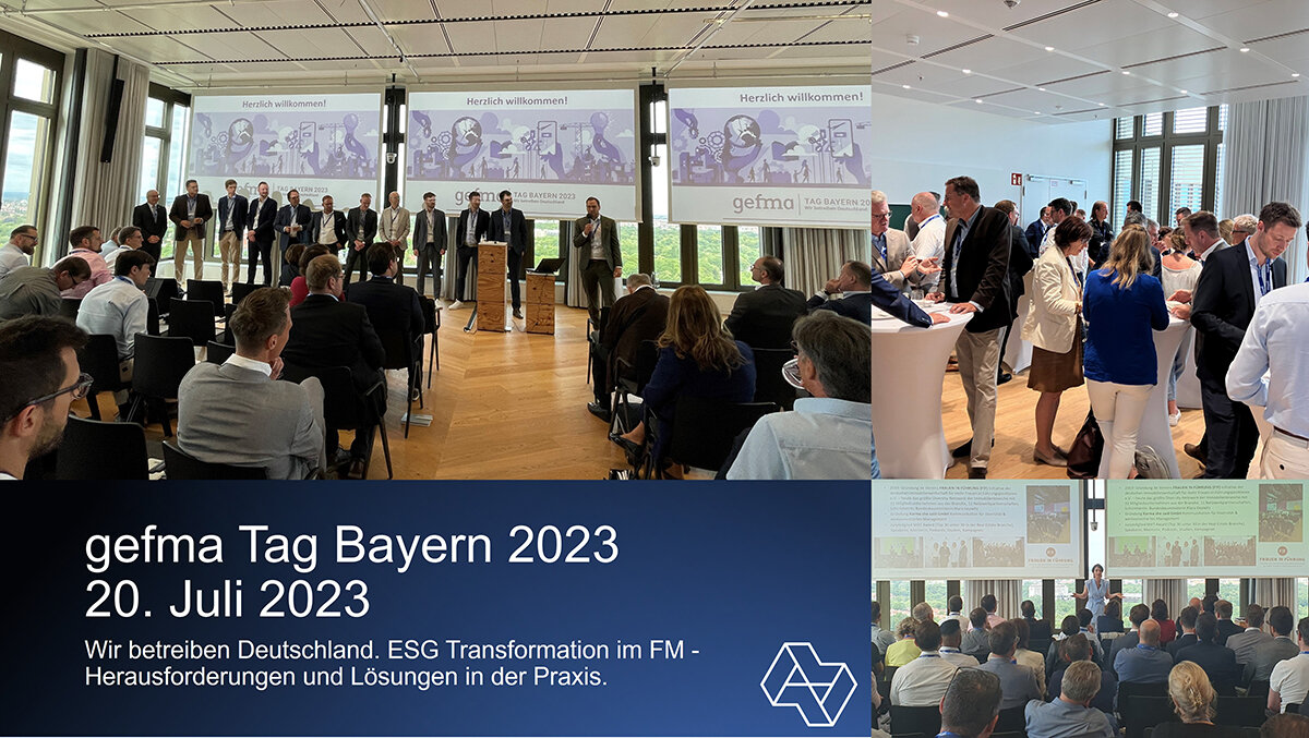 Der gefma Tag Bayern 2023 (gefma = Deutscher Verband für Facility Management e. V.) am 20. Juli 2023 hatte sich unter dem Motto "Wir betreiben Deutschland“ das Thema „ESG Transformation im Facility Management. Herausforderungen und Lösungen in der Praxis" auf die Agenda gesetzt. Der Einladung folgten gut 130 Verantwortliche der Facility Management Branche und haben sich zum persönlichen und fachlichen Austausch in der Konzernzentrale der BayWa AG in München getroffen. Zehn Speaker stellten Innovationen und Best Practices zu unterschiedlichen Aspekten des Themas, vom nachhaltigen Entsorgungsmanagement über die Energieoptimierung bis hin zur Dekarbonisierungsstrategie und ESG-konformen FM-Management für große Immobilienportfolios vor. Jede Menge praxisorientierter Input für weitergehende Gespräche und die jeweils eigene ESG-Roadmap.