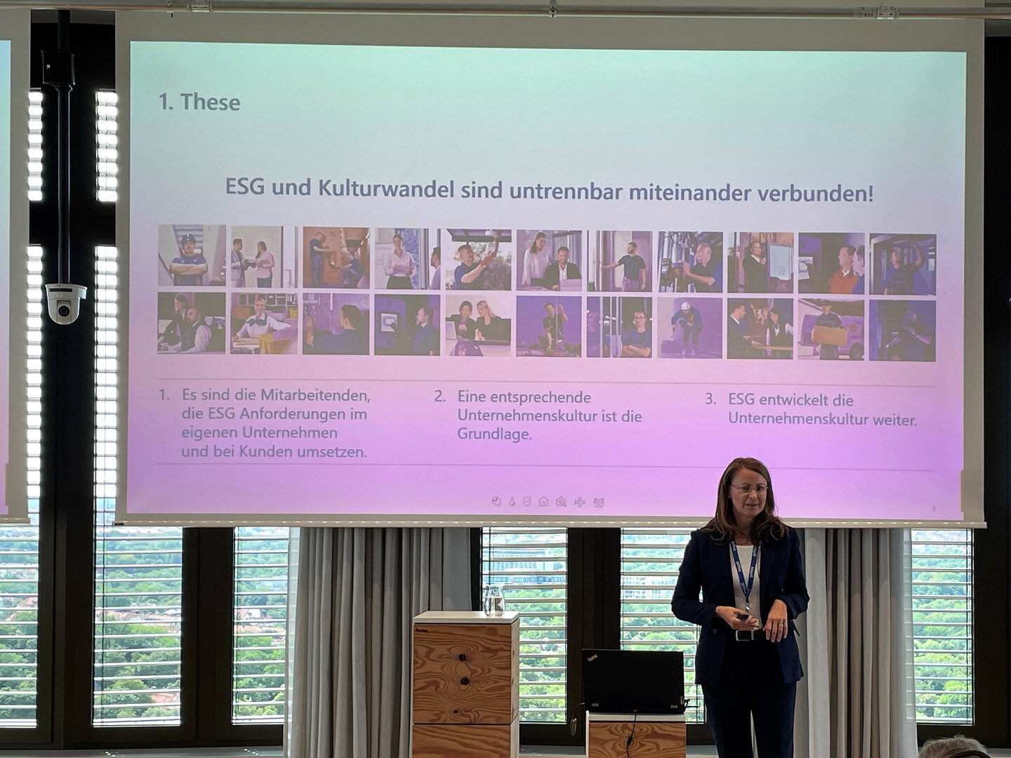 Anette Weller, Mitglied des Vorstands (CSO) der Gegenbauer Holding, berichtete über „ESG als Treiber von Kulturwandel für operative FM-Unternehmen.“ Dabei stellte sie heraus, dass die Glaubwürdigkeit einer Unternehmenskultur sich im täglichen Handeln widerspiegele, ob ich mich also bewusst entscheide, soziale Faktoren in einer FM-Ausschreibung reinzunehmen oder rauszulassen. Dabei zeigte sich Anette Weller überzeugt, dass die Wirkung einer offenen und von Nachhaltigkeit geprägten Unternehmenskultur viel stärker sei, wenn die Unternehmensleitung von oben her vorangeht. Es brauche deshalb einen enormen Wissenstransfer angefangen bei der Regulatorik über Kunden, Zertifizierungen und Vieles mehr. Sie berichtete von vielen wertvollen Workshops, in denen sie mit einem Team diese Themen allen Mitarbeiterinnen und Mitarbeitern verständlich und greifbar vermittelt habe. Dabei wurde ein Konzept implementiert, das eine Gesprächs- und Kommunikationskultur etabliert, die zu mehr Verständnis führt, wie der jeweils andere tickt. Gibt es in der Folge weniger Konflikte, amortisiert sich der Aufwand leicht. FM und Unternehmenskultur beflügeln sich täglich gegenseitig, so ihre Erfahrung. In diesem Sinne sei eine solcher gefma Tag elementar wichtig, um Wissen und Austausch zu ermöglichen und zu vertiefen.