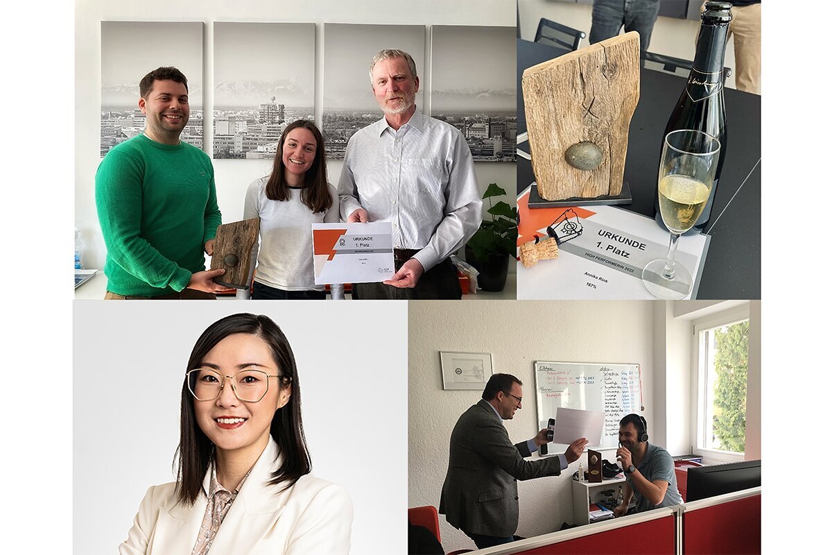 Der Award wurde ihr feierlich von ihrem Kollegen und Vorjahressieger Philipp und einem unserer Partner Markus M. überreicht. Anschließend wurde im Münchner Büro mit Sekt auf diesen Erfolg angestoßen.