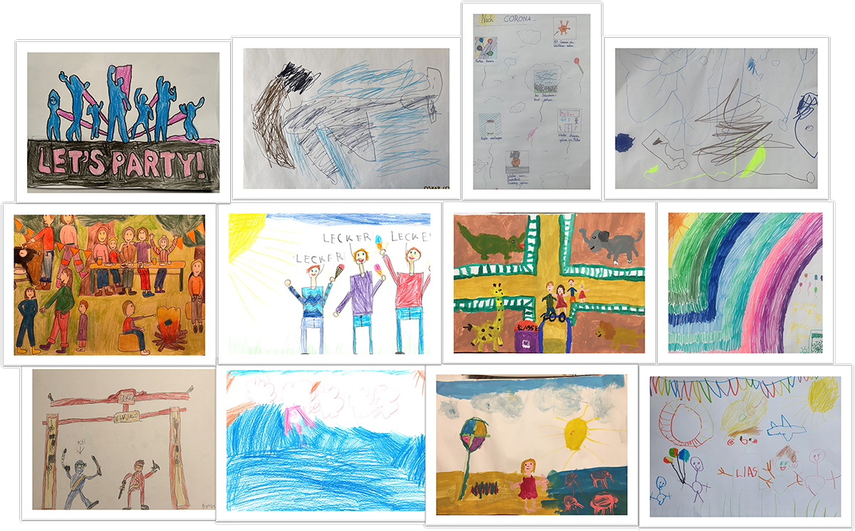 Der Kreativität wurden keine Grenzen gesetzt und die jungen TeilnehmerInnen legten sich mit Bunt- und Wachsmalstiften sowie Wasserfarben ins Zeug. Die Einsendungen variierten von feiernden Familien unter Regenbögen, Lagerfeuertreffen und Partys sowie Zoo- und Strandbesuche. Dies sind nur einige der eingereichten Bilder und Bildergeschichten. Zwölf Kinder im Alter von 4 - 11 Jahren haben an dem Wettbewerb teilgenommen und reichten bei uns ihre Kunstwerke ein, im Anschluss wurden diese gesammelt, abschließend abgestimmt und die schönsten Einsendungen gekürt.