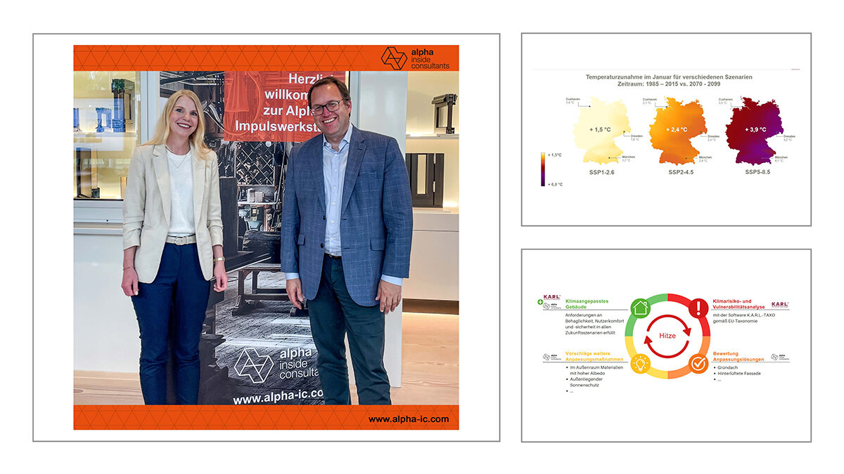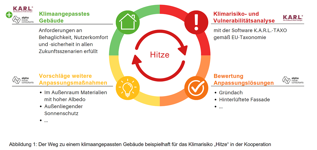 Für bestmögliche Lösungen bündeln die KA Köln.Assekuranz Agentur GmbH und die Alpha IC GmbH ihre Expertise und kooperieren ab sofort. Die KA Köln.Assekuranz Agentur GmbH erstellt mit ihrem Analysetool K.A.R.L.® die Klimarisiko- und Vulnerabilitätsanalysen. Alpha IC bewertet die Anpassungslösungen und berät bei der Planung weiterer notwendiger Maßnahmen gemäß der Taxonomievorgaben.