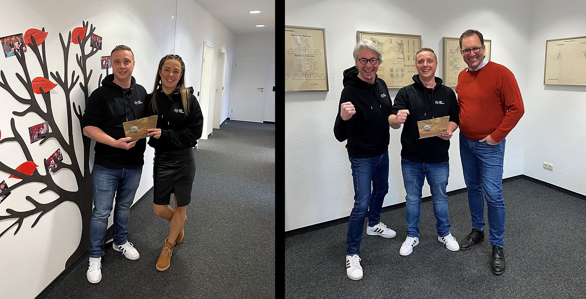 Beim „Wegbereiter“-Award handelt es sich um einen eigens für uns angefertigten „Stein im Brett“-Pokal, der zeigen soll, dass die ausgezeichneten Mitarbeiter:innen einem als guter Freund zur Seite stehen. Vorschläge und Wahl des mit 1.000 Euro dotierten Awards erfolgen im gesamten Team. Der Pokal ist das Pendant zu unserem „Highperformer“-Award, der für eine herausragende umsatzbezogene Leistung im Vorjahr verliehen wird.