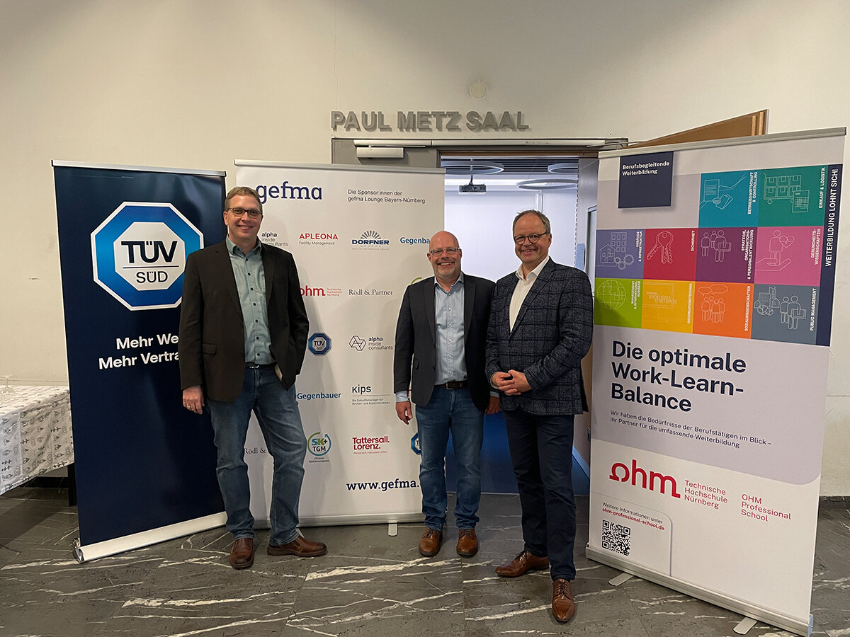 Frank Gentzwein, Niederlassungsleiter der TÜV Süd Industrie Service GmbH für Nürnberg und Hof, sowie sein Kollege Christoph Theilen, Vertriebsbeauftragter Bayern, waren bei der gestrigen gefma Lounge zum Thema „Bündelung von SV/SK-Prüfungen für ein Immobilienportfolio“ an der TH Nürnberg Georg Simon Ohm die Referenten. Sie führten auf der Basis von Best Practices durch den Prozess ihres integrierten Prüfmanagements mit den Zielen, Betreiberpflichten einzuhalten, Rechtssicherheit zu gewährleisten und die Verfügbarkeit von Daten und Dokumentationen sicher zu stellen. „Das Problem ist erst einmal nicht, dass wir Mängel finden, sondern wie damit umgegangen wird“, so die Feststellung der beiden Referenten.