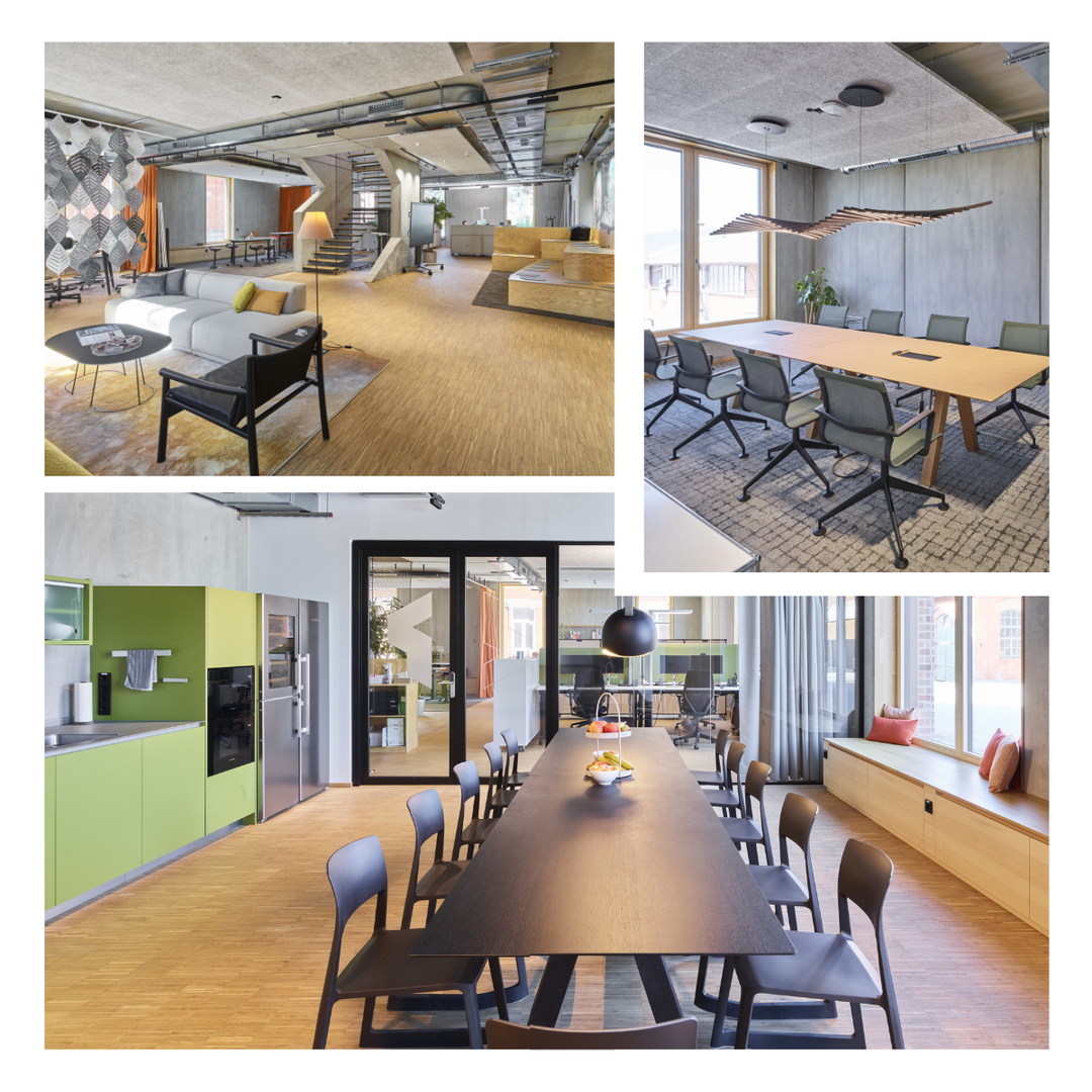 - Auswahl nachhaltiger Produkte, wie z. B. Teppichfliesen von Interface mit 93% Recyclinganteil und CO2-optimierter Produktion