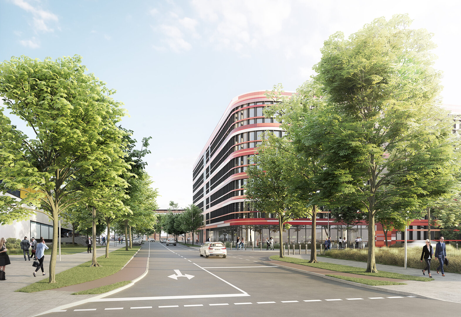 Das entstehende Bürogebäude besitzt sechs oberirdische Geschosse. Die gesamte Mietfläche beträgt ca. 13.300 m2. Im Untergeschoss sind Flächen für Gebäudetechnik, Lager und 64 PKW-Stellplätzen vorgesehen. Es werden 2 Stellplätze für Menschen mit Behinderungen und 15 Stellplätze mit Ladestationen für Elektrofahrzeuge ausgerüstet und gemäß GEIG jeder dritte Stellplatz mit der entsprechenden Infrastruktur vorgerüstet. Die weiteren PKW-Stellplätze sind im benachbarten Quartiersparkhaus vorgesehen. Im Erdgeschoss ist ein Fahrrad-Raum geplant.