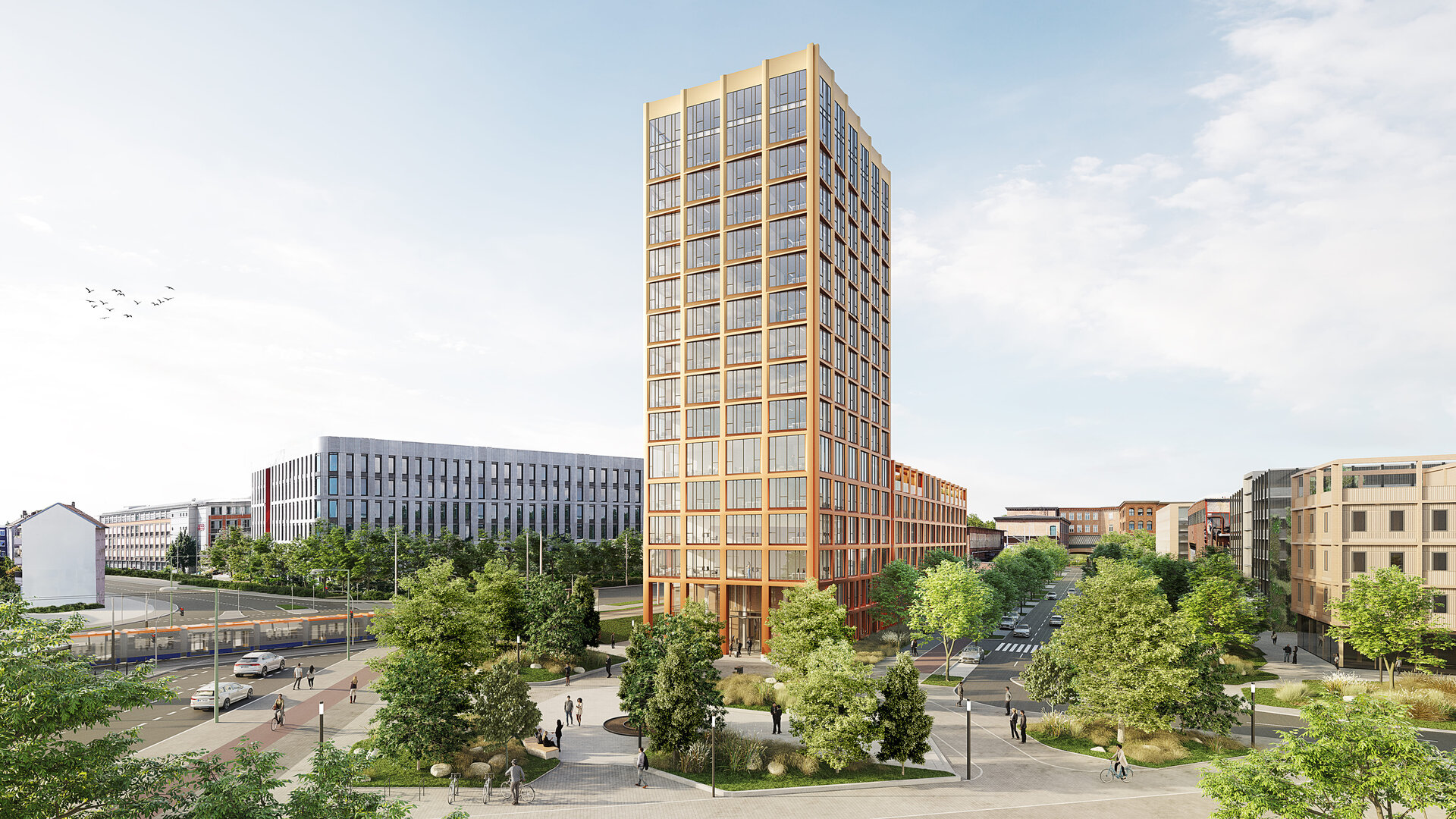 Mit seiner Lage im Schnittpunkt von Grünachsen sowie dem Entree des Geländes von Ost bildet das Objekt Lilienthal den städtebaulichen Auftakt des neuen Quartiers.